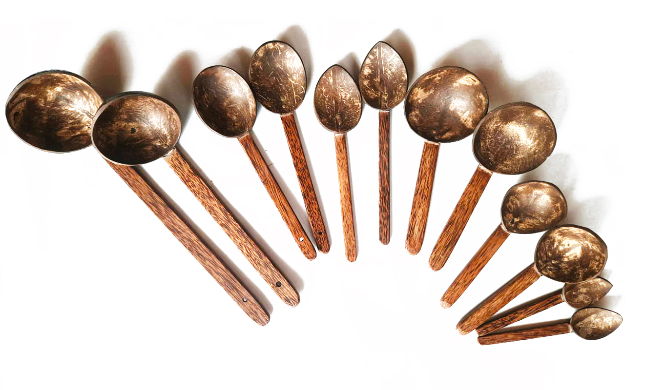 Eco-Conscious Set of 10 Coconut Shell Cooking Spoons