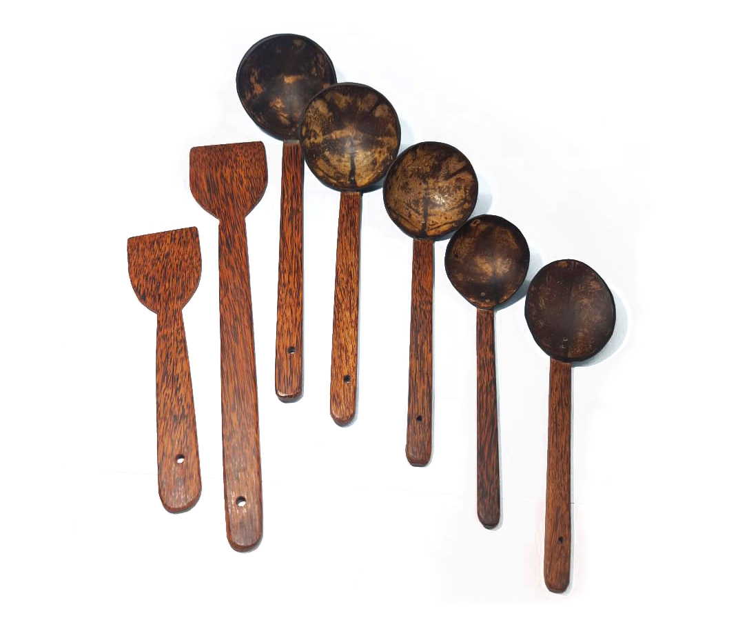 Handmade 7 Coconut Shell Spoons for Cooking and Serving