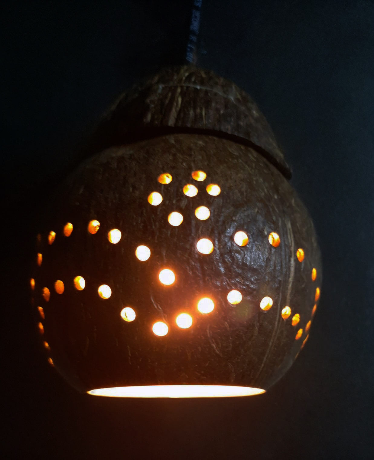 Handcrafted coconut shell lamp shades with bulb and light holders,…